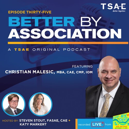 EXCERPT:  In this episode, recorded live at TSAE’s New Ideas Annual Conference in San Antonio, hosts Steven Stout, FASAE, CAE, and Katy Markert sit down with Christian Malesic, MBA, CAE, CMP, IOM, an eight-time CEO with more than 28 years of leadership experience. Christian shares his remarkable path from Air Force officer to association executive, highlighting the strategies and mindset that have guided his success in organizational turnarounds. He discusses the critical role of strong governance, financial discipline, and relationship-building in driving meaningful change, while also reflecting on his passion for nonprofit work and lifelong learning. Packed with practical insights and real-world experience, this conversation offers valuable guidance for both emerging and seasoned association leaders...